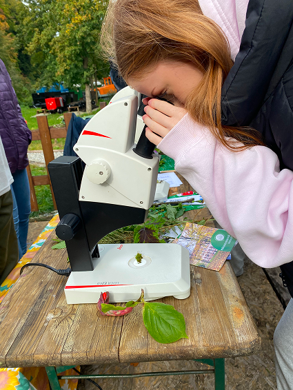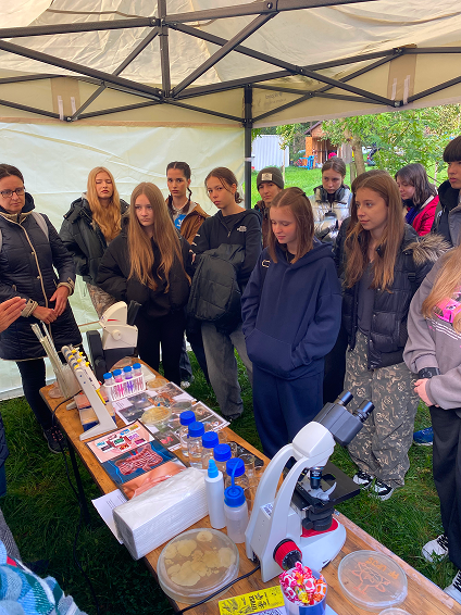 V mikrobiologickom stánku účastníci pod mikroskopom pozorovali baktérie z jogurtu (rod Lactobacillus) či Bacillus, skúmali morfológiu streptomycét, merali pH vzoriek z extrémnych prostredí a vyskúšali si základné laboratórne techniky, ako pipetovanie či určovanie baktérií z kultivačných platní.