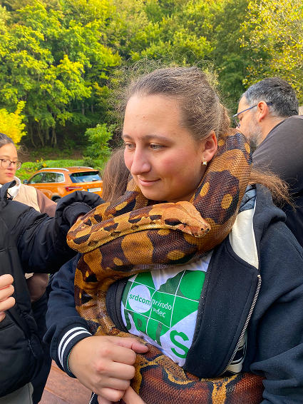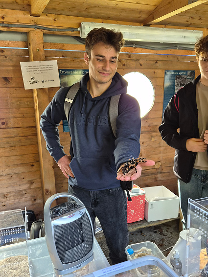 Herpetologický stánok predstavil plazy Slovenska, najmä hady, ich ekológiu a význam v prírode. Študenti sa naučili rozlišovať vretenicu severnú (Vipera berus) od nejedovatej užovky hladkej (Coronella austriaca) a pochopili, prečo sa hadov netreba obávať. Ako živé ukážky boli prezentované aj exotické druhy – hady, korytnačka, agama či bezstavovce, ktoré vzbudili veľký záujem.
